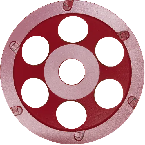 Hochleistungsschleiftopf für höchste Ansprüche mit sehr guter Staubabführung für abrasive Werkstoffe wie Estrich und abrasive Baumaterialien.